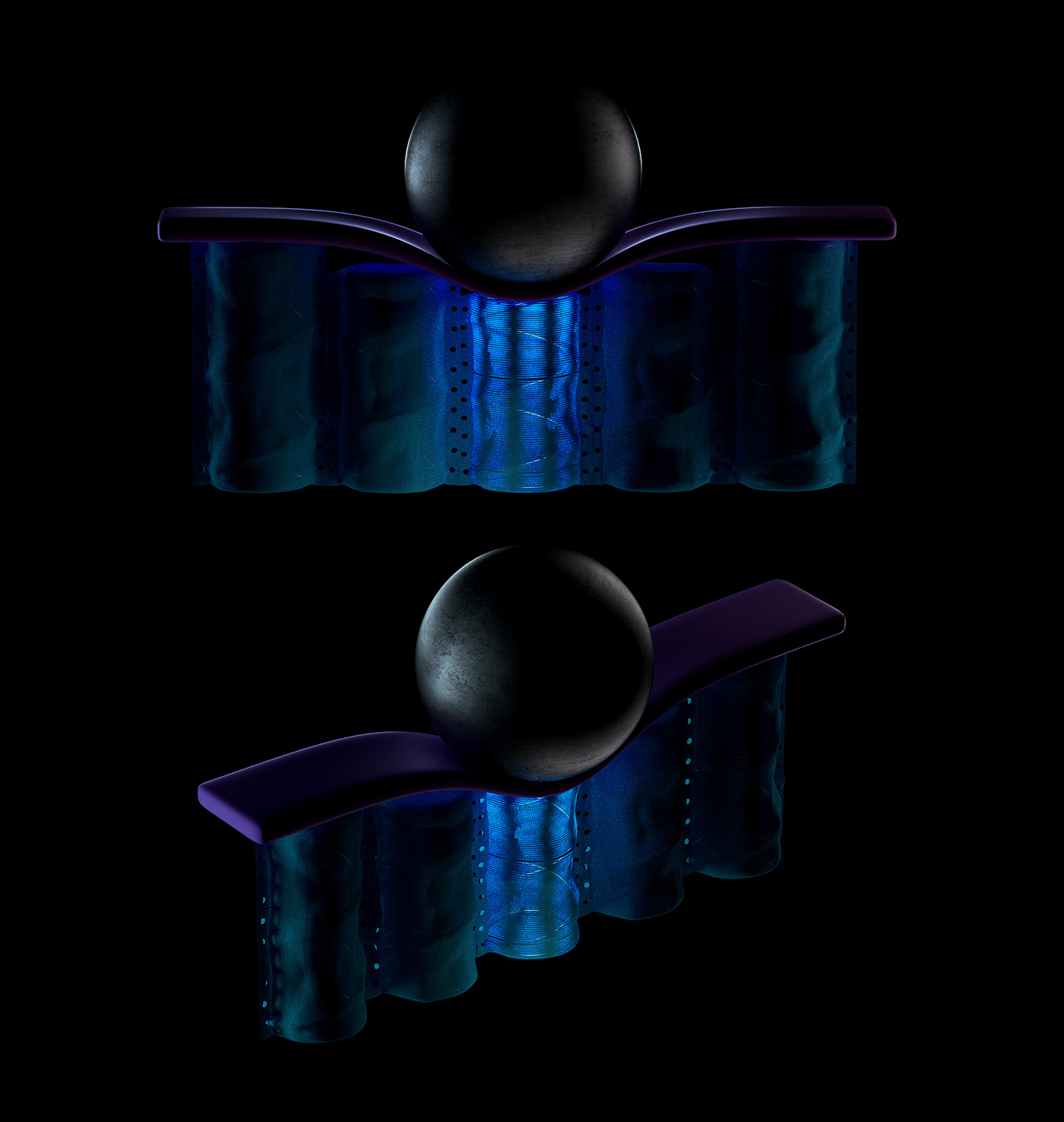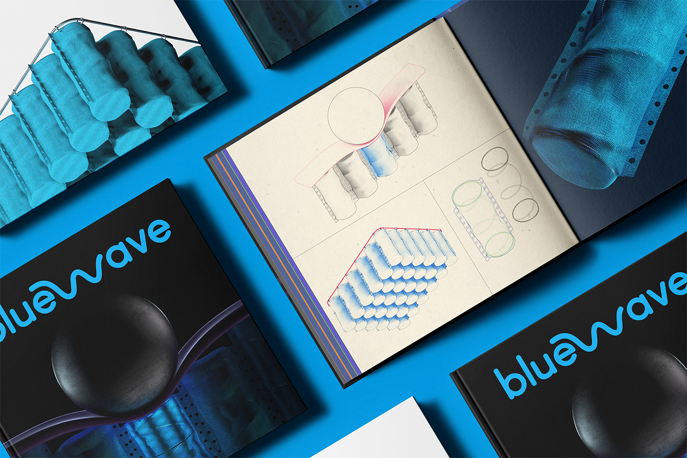 O design da BlueWave combina uma cor azul vibrante com uma construção ergonômica, visando proporcionar um descanso eficiente e confortável.